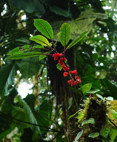 Drymonia teuscheri as a low epiphyte on mossy tree trunk in forest understory, Mashpi FR, Pichincha, Ecuador