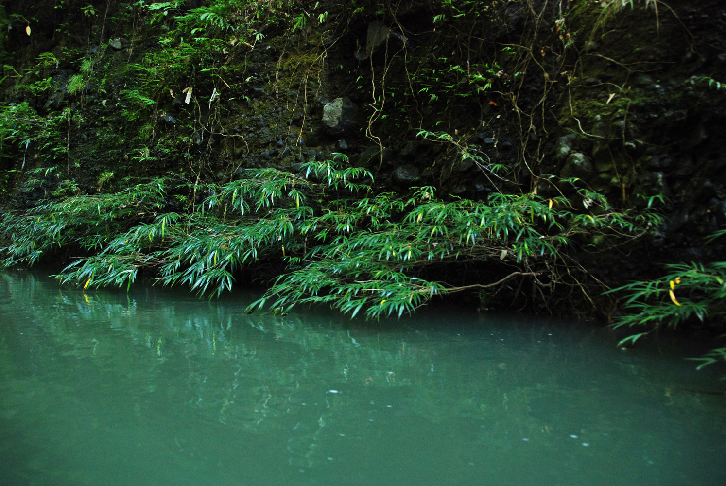 Boatman under Ficus rivularis branches, Magdapio, Luzon