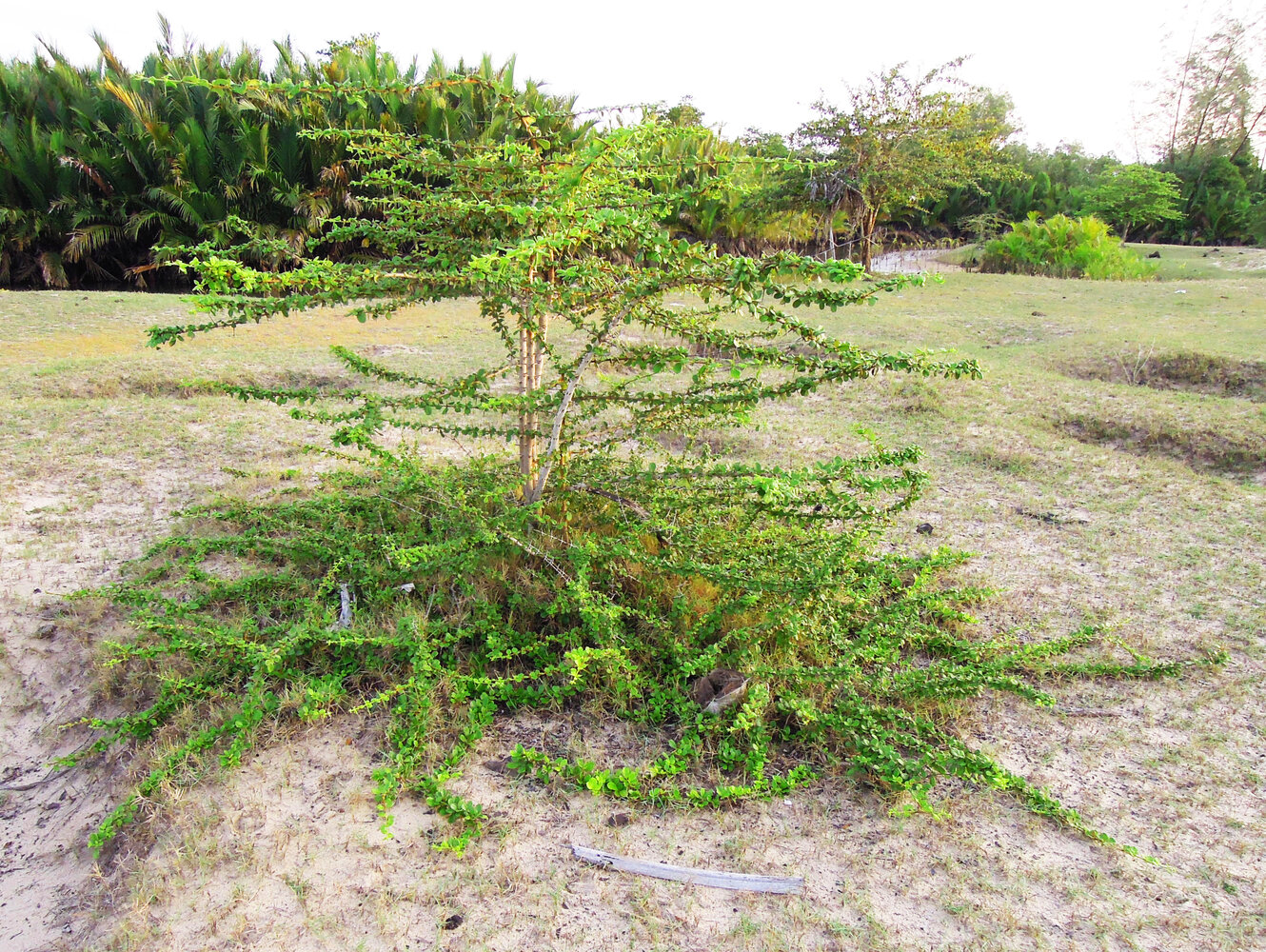 Catunaregam spathulifolia, large creeping herbaceous phase and erect central woody stems, Penarik, Trengganu, Malaysia