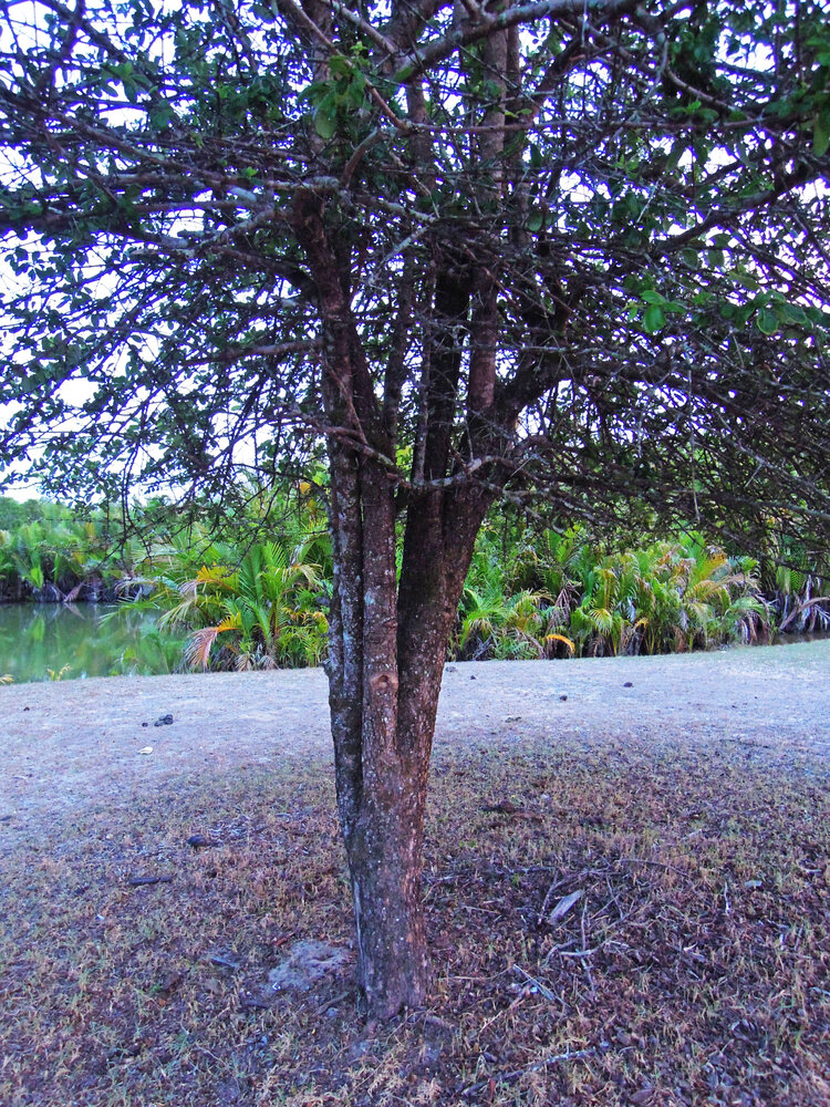 Catunaregam spathulifolia, tree phase, the single short basal trunk probably resulting from the fusion of a group of erect emerging stems, Penarik, Trengganu, Malaysia