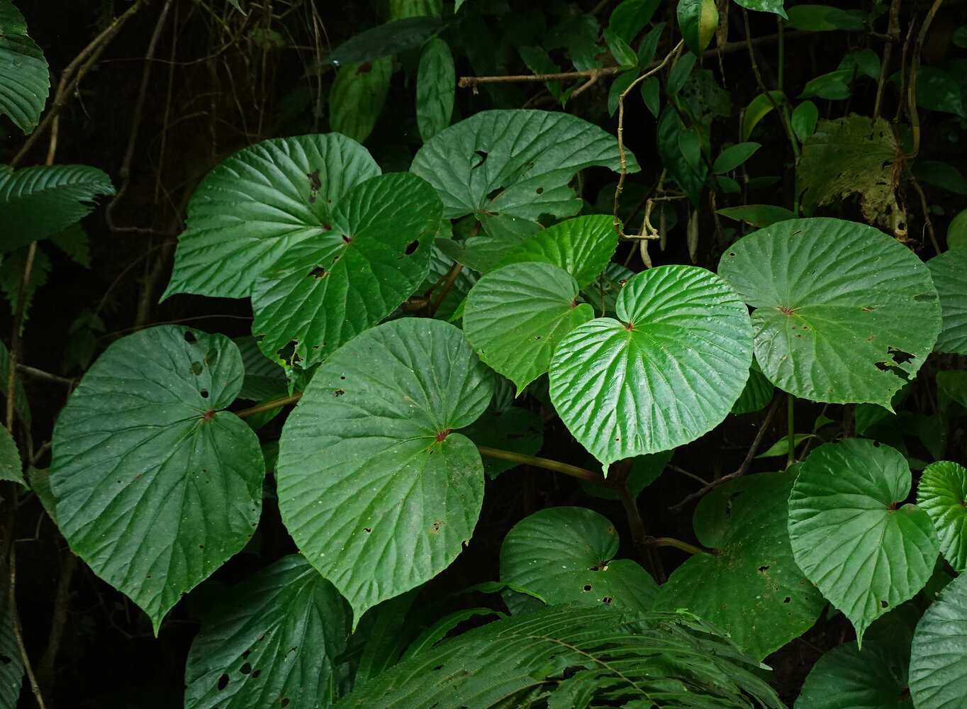 Begonia rotundibracteata, most young individuals exhibit a blue iridescence, especially under flash light, Danum Valley, Sabah, Borneo