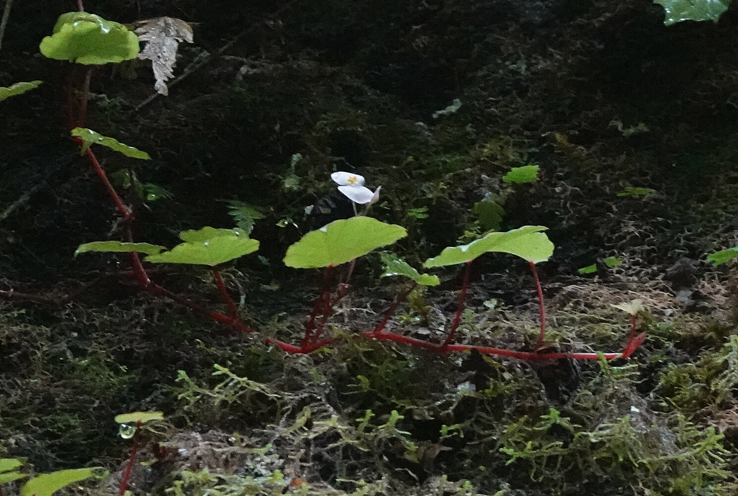 Begonia cf. muricata, creeping stem, long inflorescence peduncle and four tepaled male and female flowers, Danau Wai Ela, Lima, Ambon, Moluccas