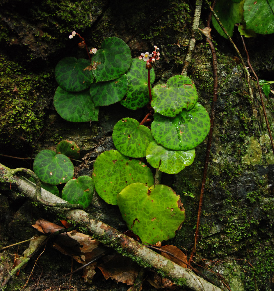 Begonia suborbiculata on vertical seeping rock, Taytay, Palawan, Philippines