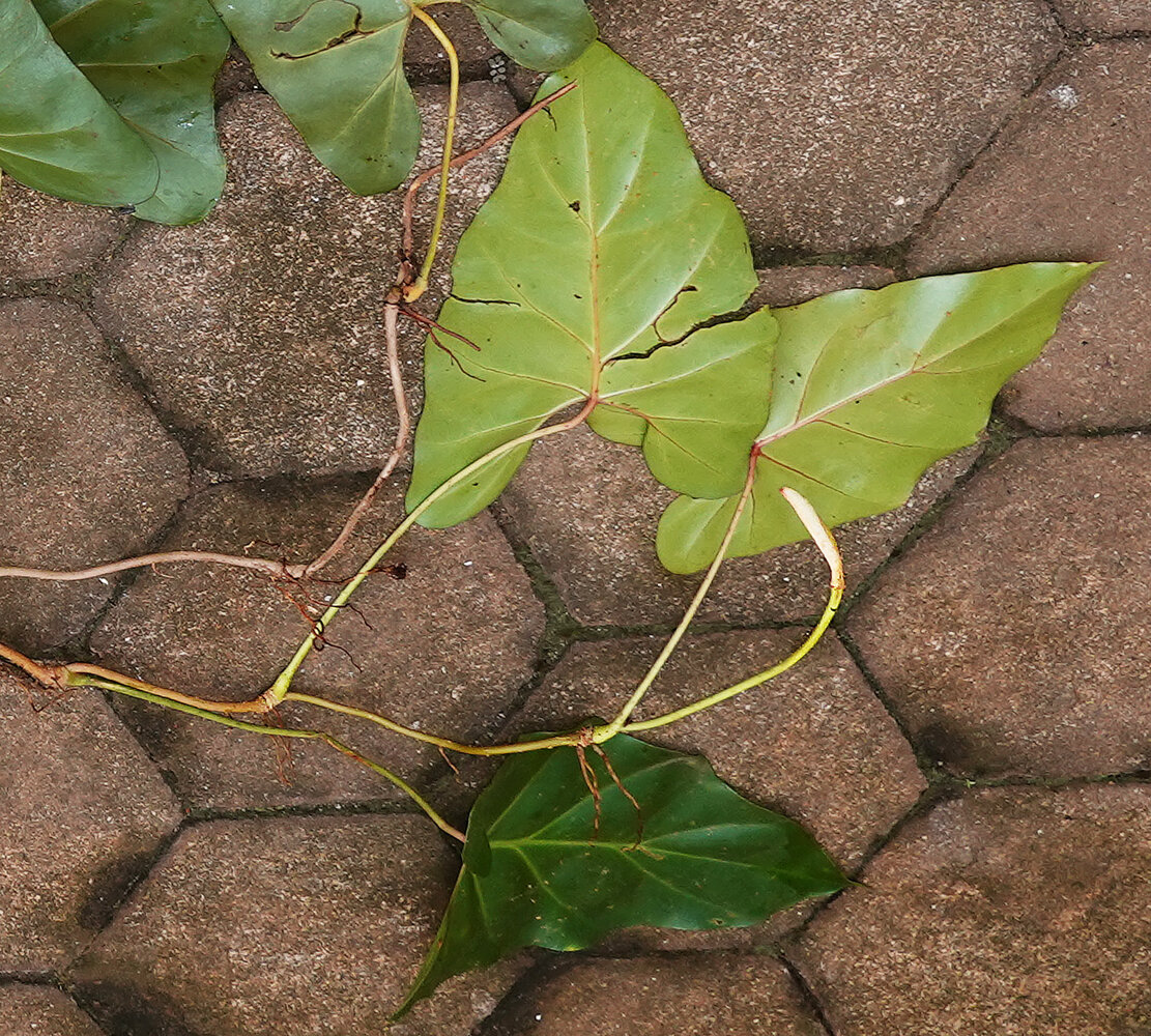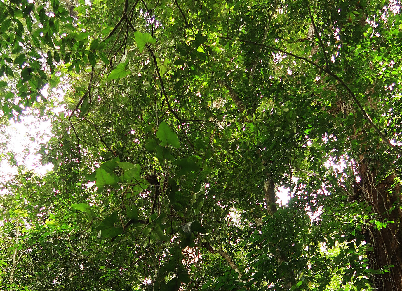 Cercestis blancii, stem and leaves while it was climbing along a Garcinia trunk, Ebodjé, Campo, Cameroon