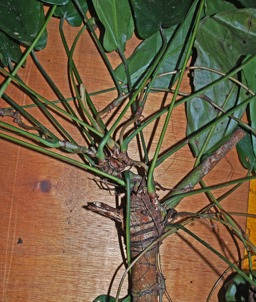 Cercestis camerunensis, horizontal anchoring roots and one long flat downwards growing feeding root, Campo, Cameroon