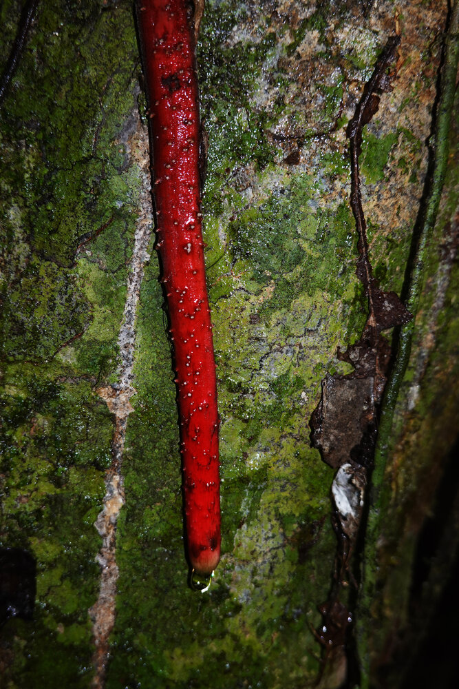 Cercestis mirabilis, downwards growing feeding roots with short spiny emergences, adhering to the host trunk, Campo, Cameroon