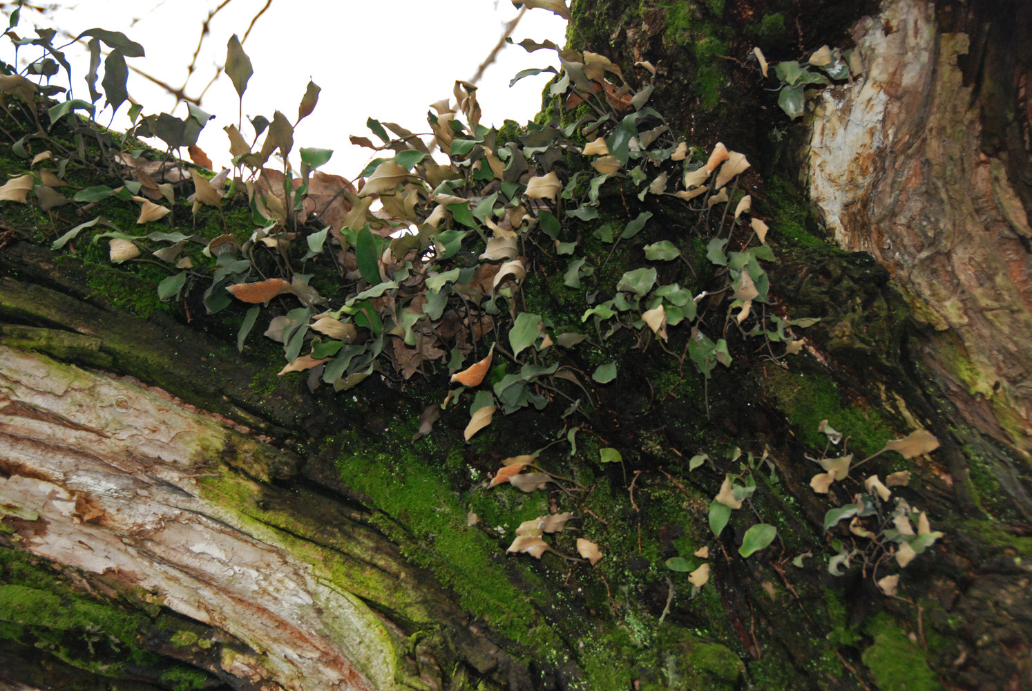 Scindapsus beccarii population, epiphytic on a Neram tree, Dipterocarpus oblongifolius, Ulu Temburong, Brunei, Borneo