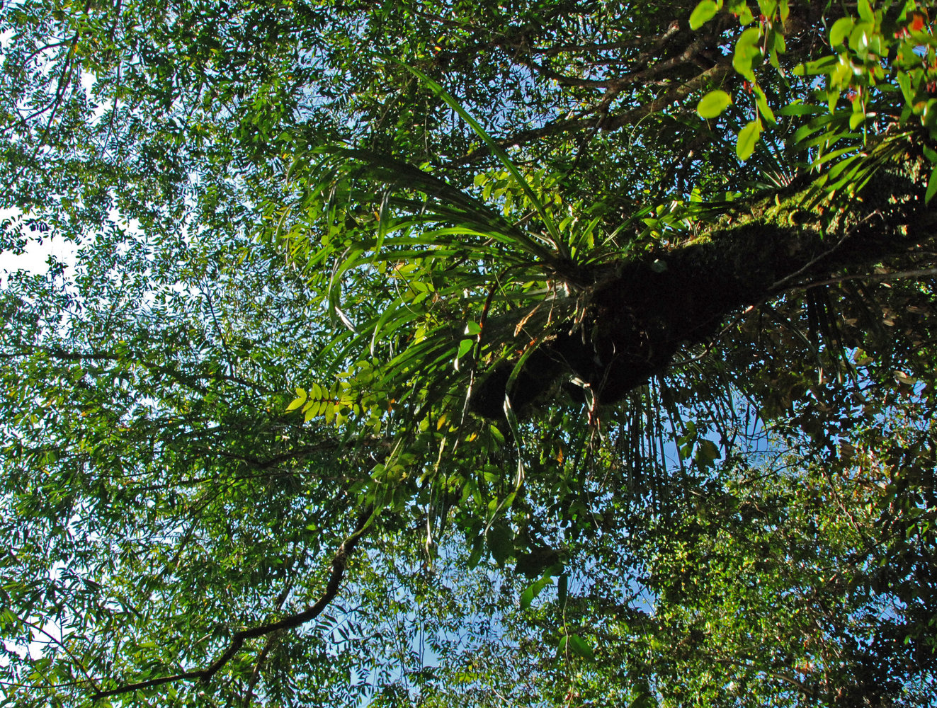 Pandanus epiphyticus, on a tree branch overhanging the Temburong river, Brunei, Borneo