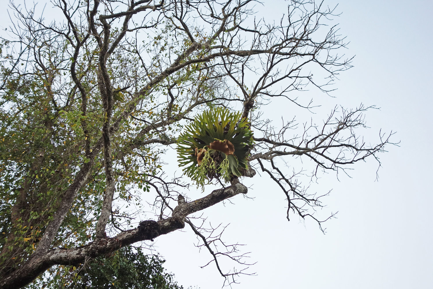 Platycerium coronarium, epiphytic in the forest canopy, Ulu Temburong, Brunei, Borneo