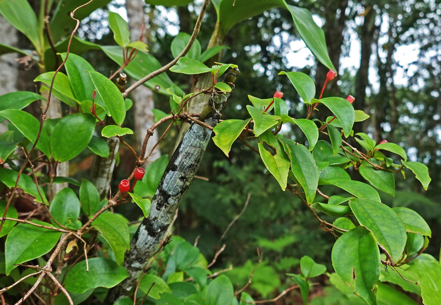Medinilla erpetina, leafy isophyllous stems and fruits, Imbu Rano, Kolombangara, Solomon Islands