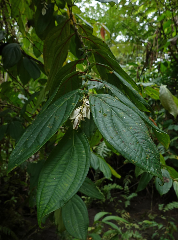 Medinilla mortonii, green upper surface of leaves and dark red lower surface, Imbu Rano, Kolombangara, Solomon Islands