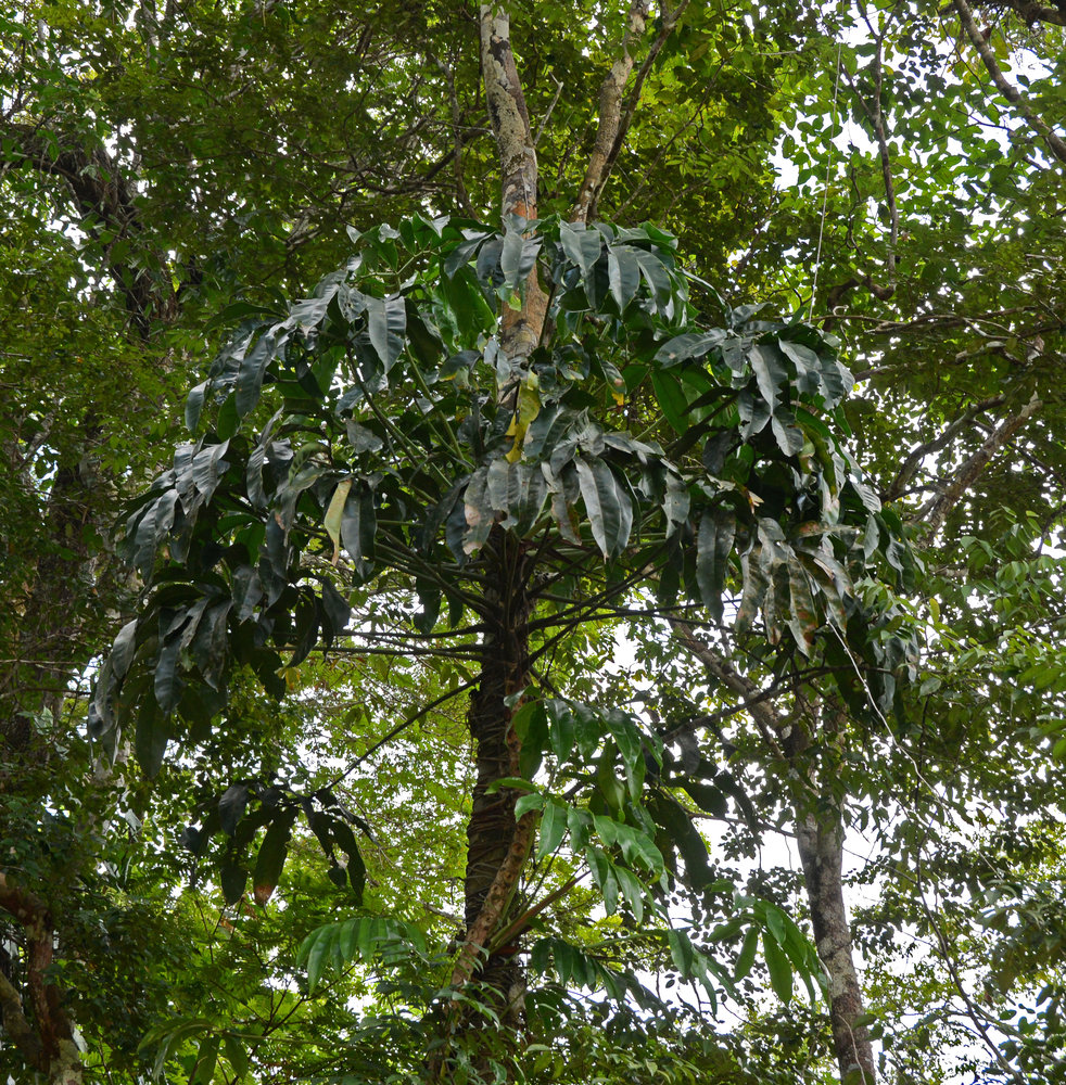 Philodendron goeldii, epiphytic, observed from the ground, Manaos, Brazil