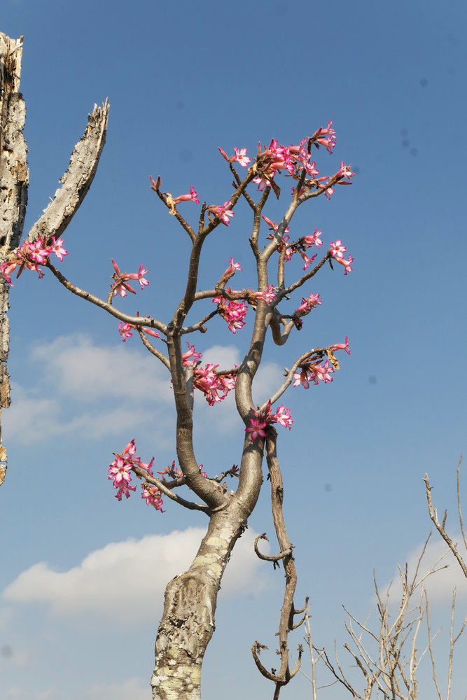 Adenium multiflorum, flowering while leafless during the dry season, Liwonde NP, Malawi