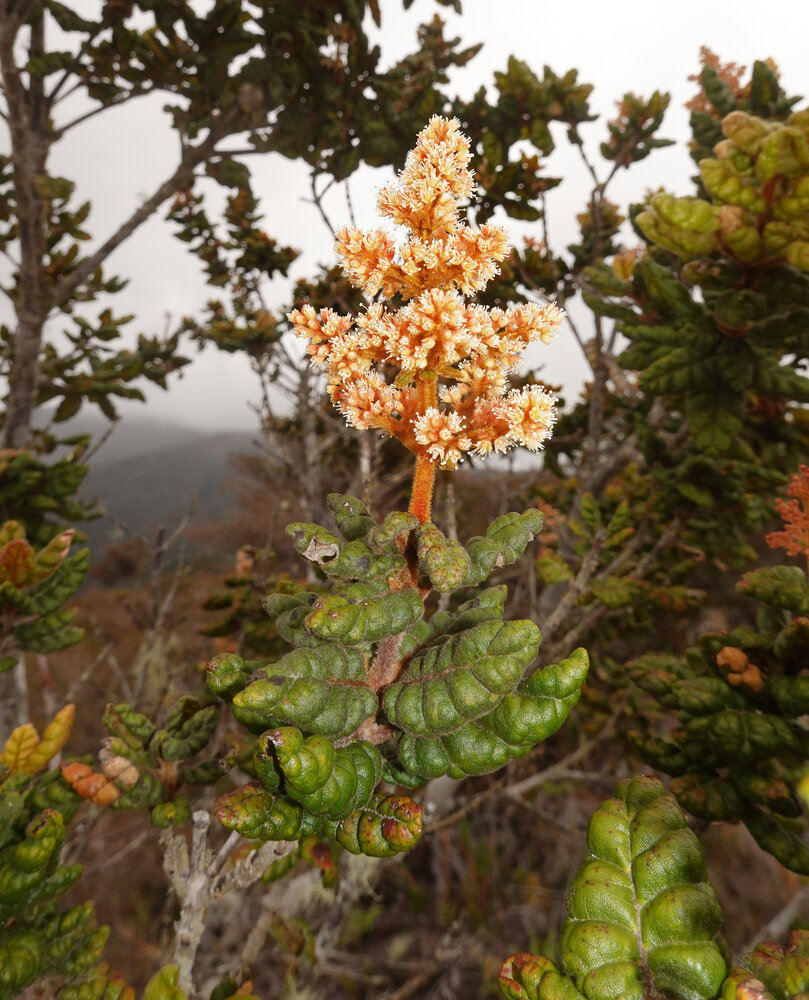 Spiraeanthemum pulleanum, strongly bullate leaves and terminal inflorescence, Anggi Lakes, 2000 m asl, Arfak Mts, West Papua
