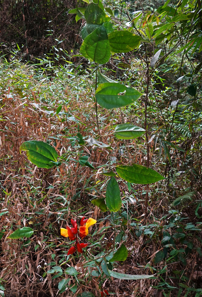 Thunbergia mysorensis, hanging leafy stem with inflorescence, Brahmagiri WS, Karnataka, India