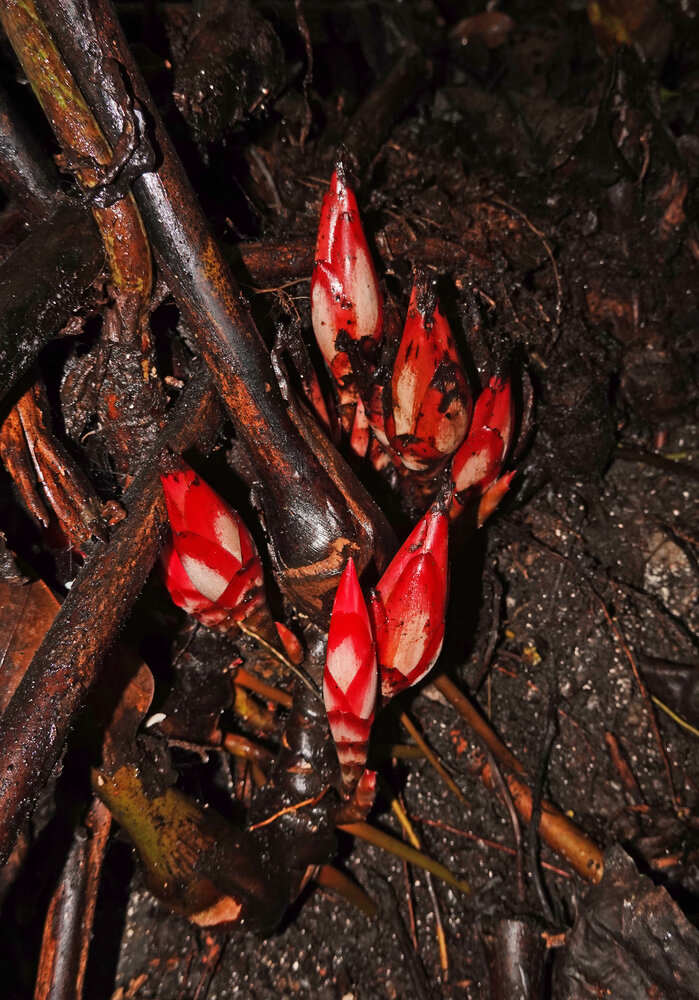 Etlingera alba, basal inflorescences at all successive phases, Danau Wai Ela, Lima, Ambon, Moluccas
