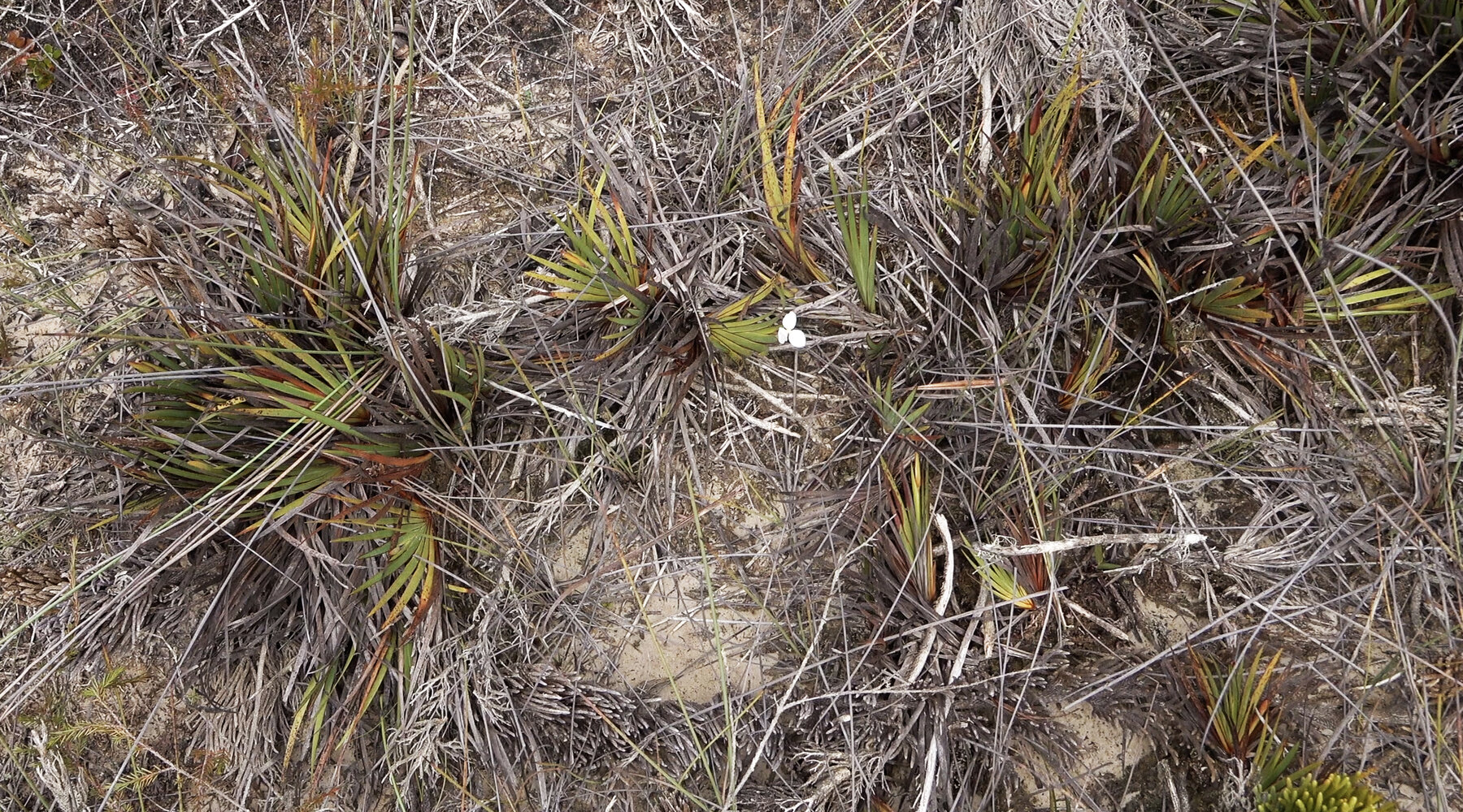 Patrick Blanc showing Patersonia novoguineensis flowering in sandy wet savanna, Anggi Lakes, Arfak Mts, 2000 m asl, West Papua, May 2025