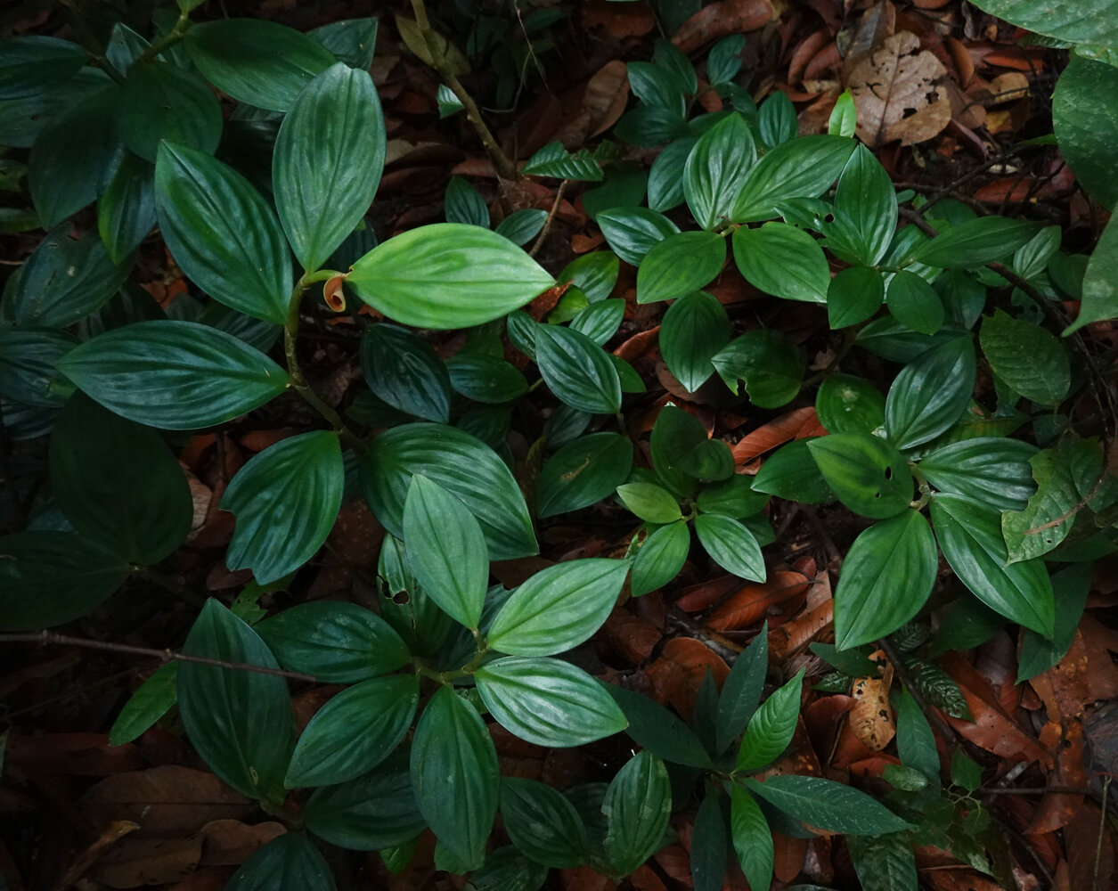 Piper aurilimbum as a small erect plagiotropic subshrub in forest understory, Mt Kinabalu NP, 1600 m asl, Sabah, Borneo