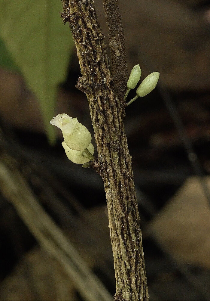 Cyrtandra cf. suberosa sect. Centrosiphon, cauliflory along the erect lignified stem, Malagufuk, Sorong, Papua