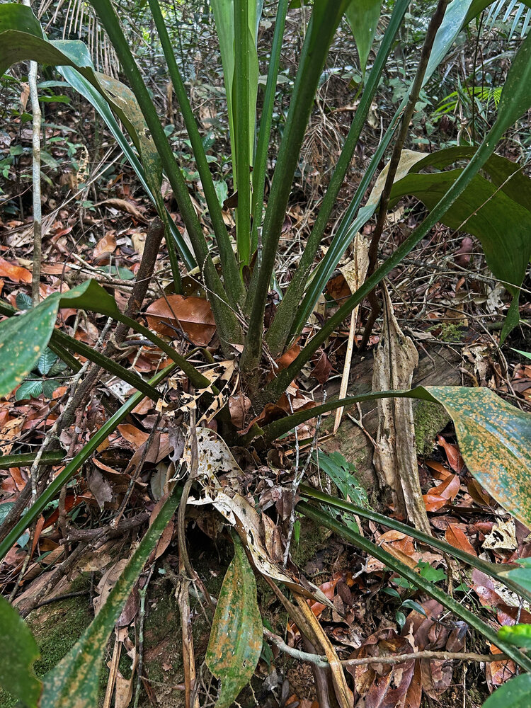 • Hanguana malayana, base of the funnel shaped rosetted leaves accumulating leaf litter, Penang Hill, Malaysia