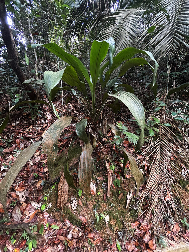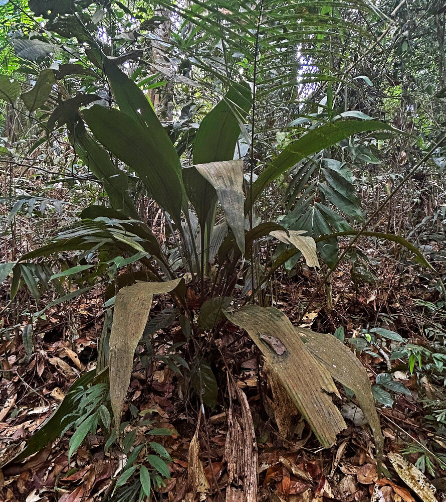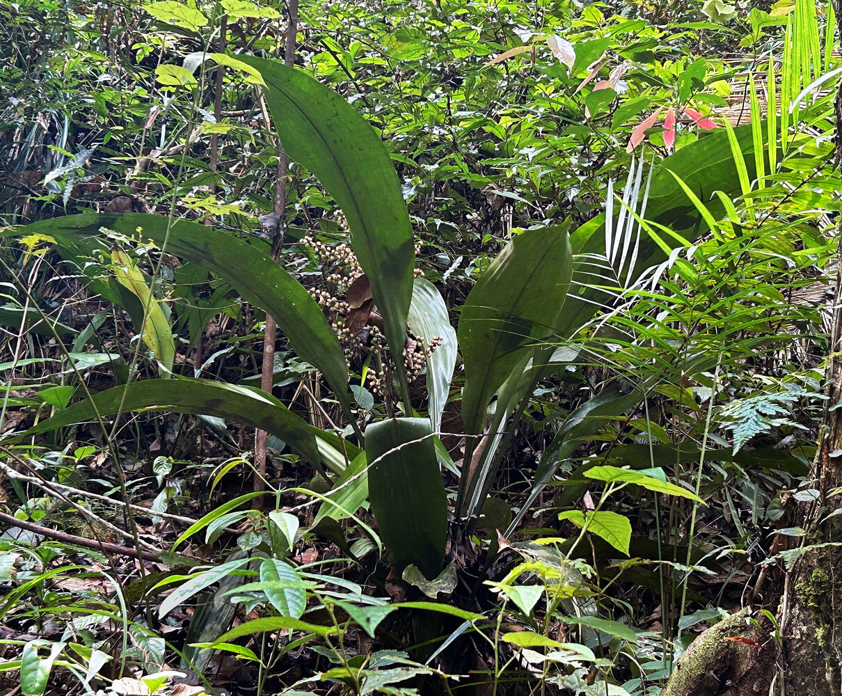 Hanguana malayana, base of the funnel shaped rosetted leaves accumulating leaf litter, Penang Hill, Malaysia