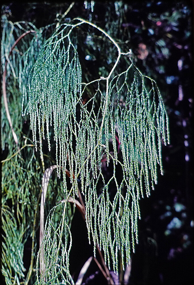 Lycopodiastrum (syn. Lycopodium) casuarinoides, Branched hanging photosynthetic stems issued from the main climbing stem, each with a resting bud evolving later in a stobili bearing much branched stem, Cameron Highlands, Malaysia