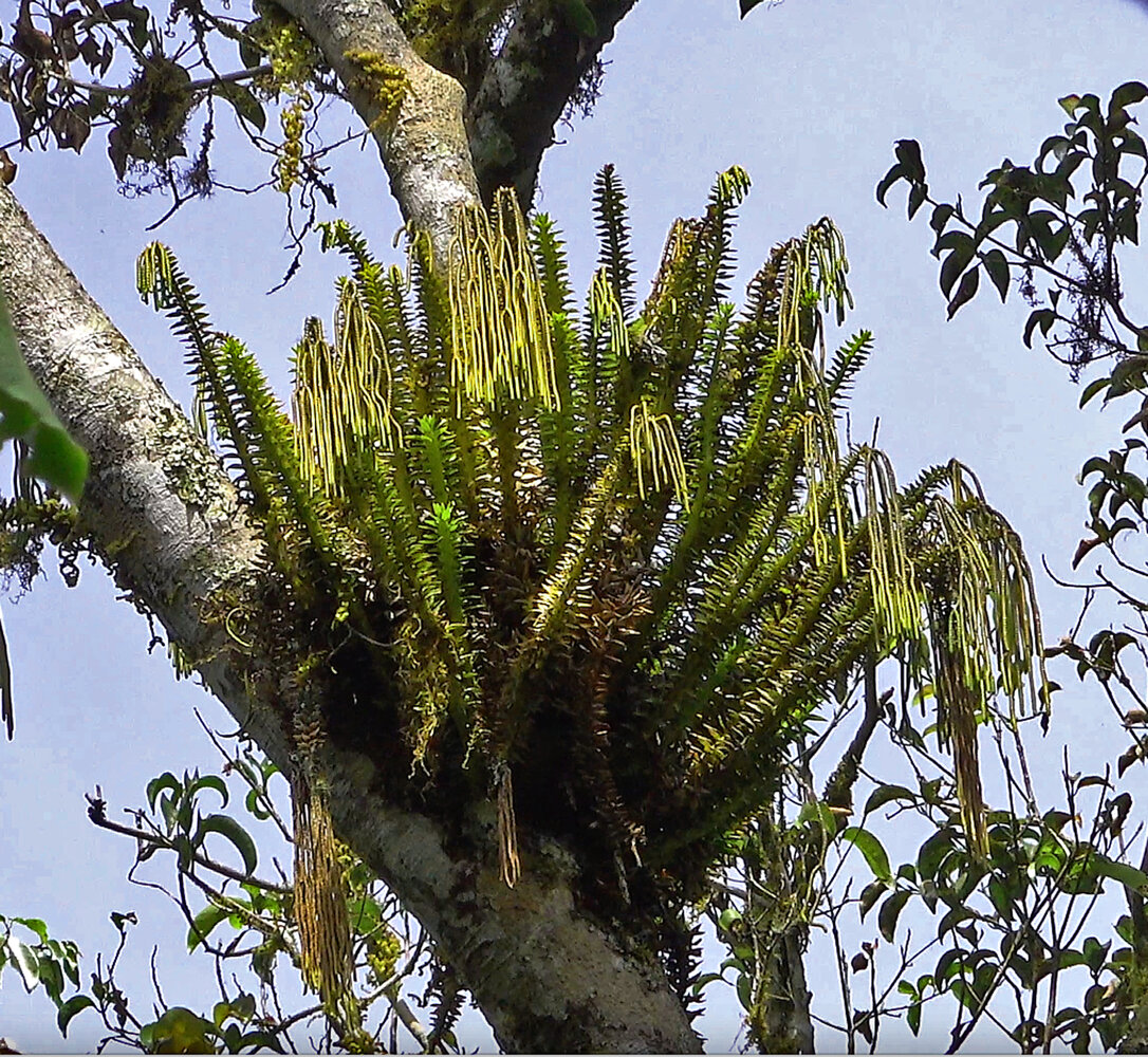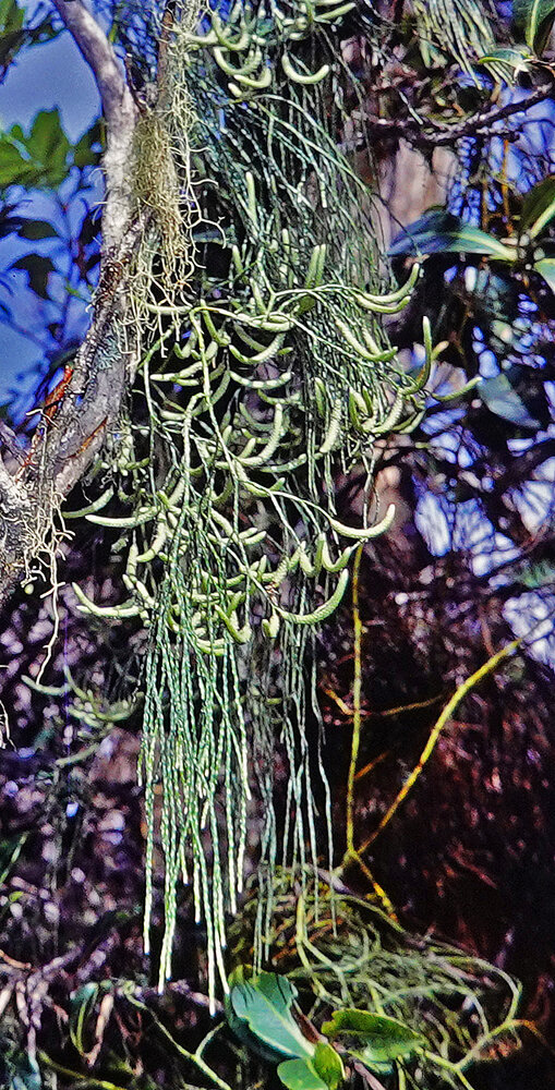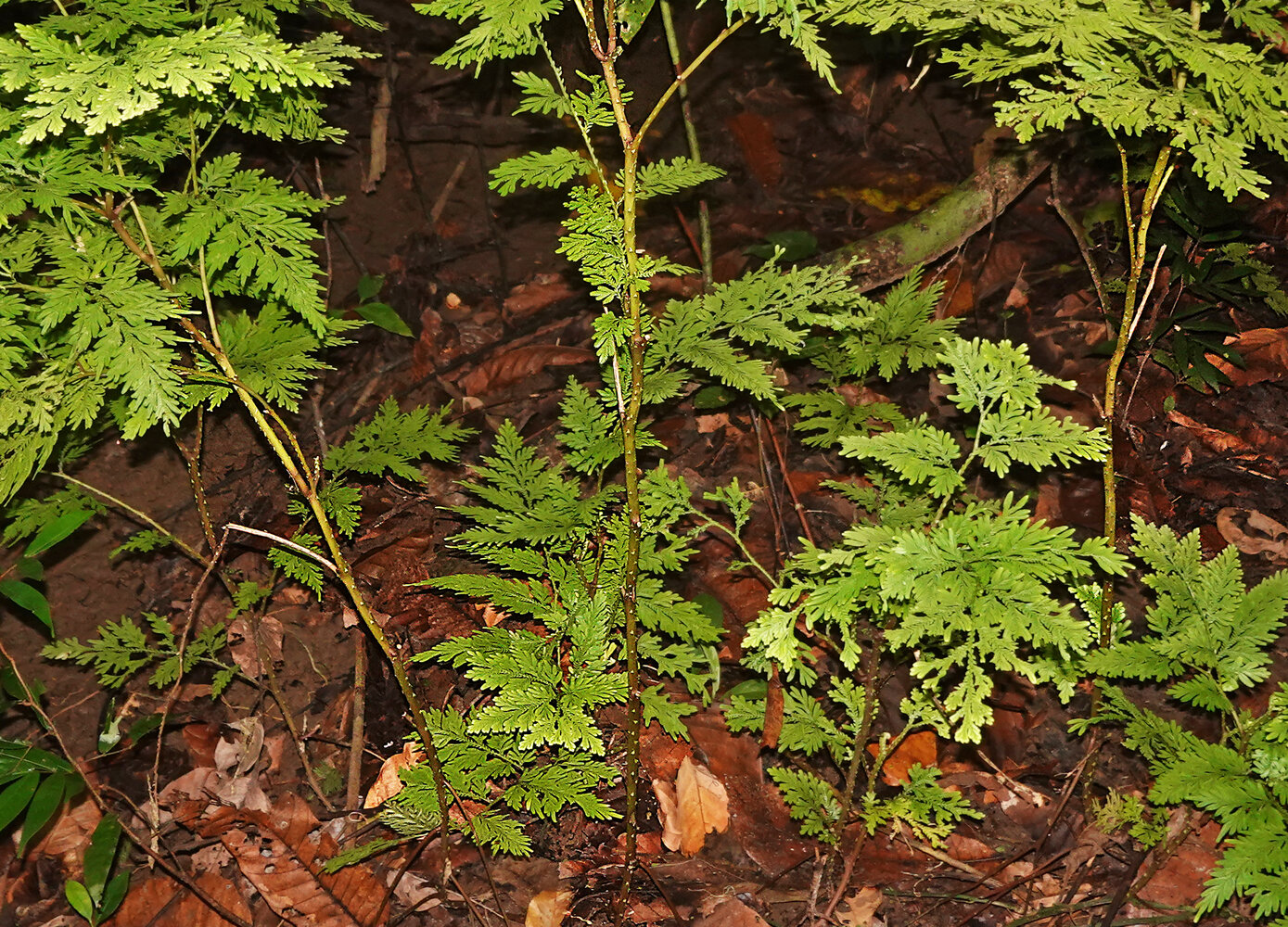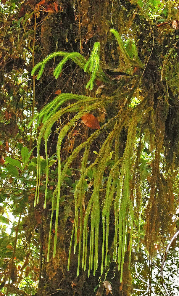 Phlegmariurus phlegmaria exhibiting establishment growth through successive more vigorous basal adventitious stems, Cameron Highlands, Malaysia