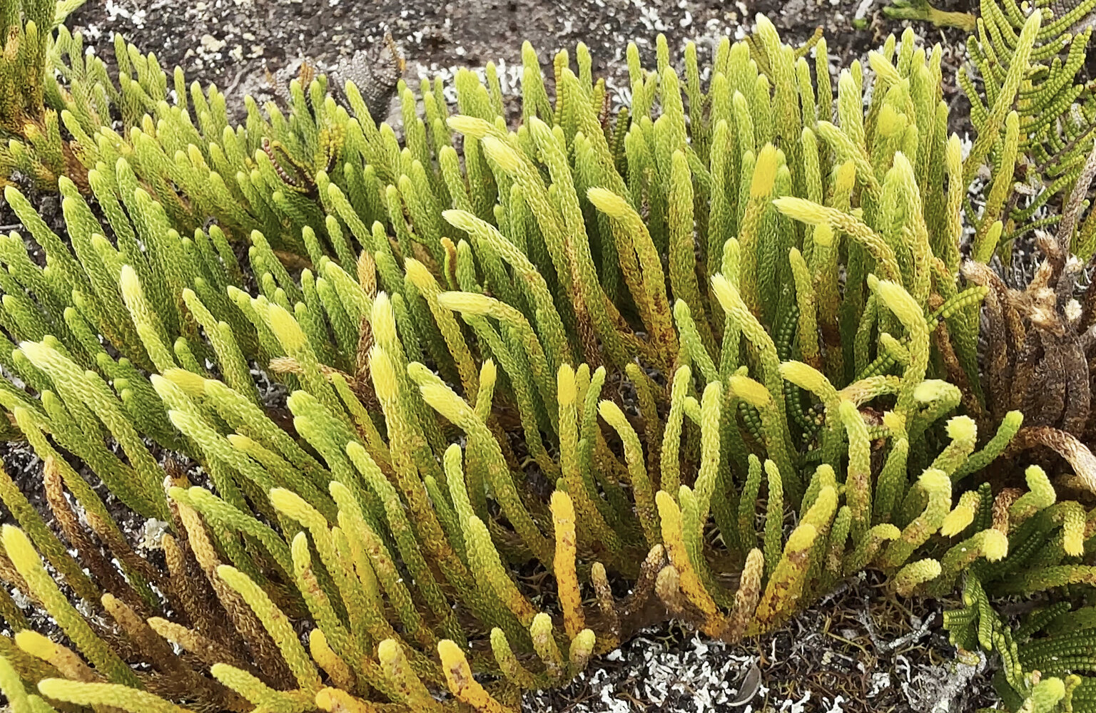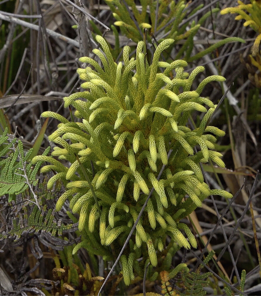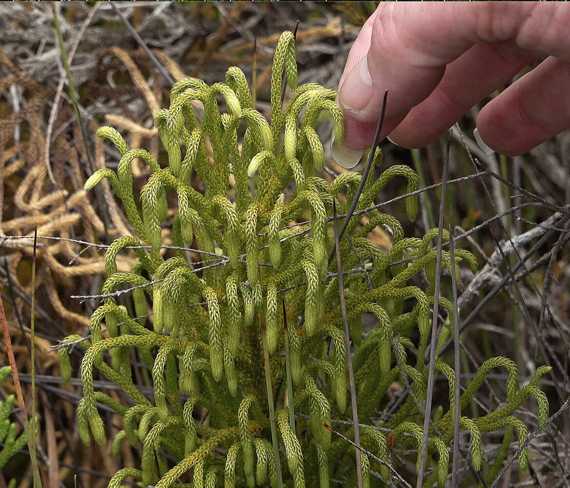 Lycopodium (Palhinhaea) hydrophilum, stems ending in recurved strobili, Anggi Lakes, 2300 m asl, Arfak Mts, West Papua