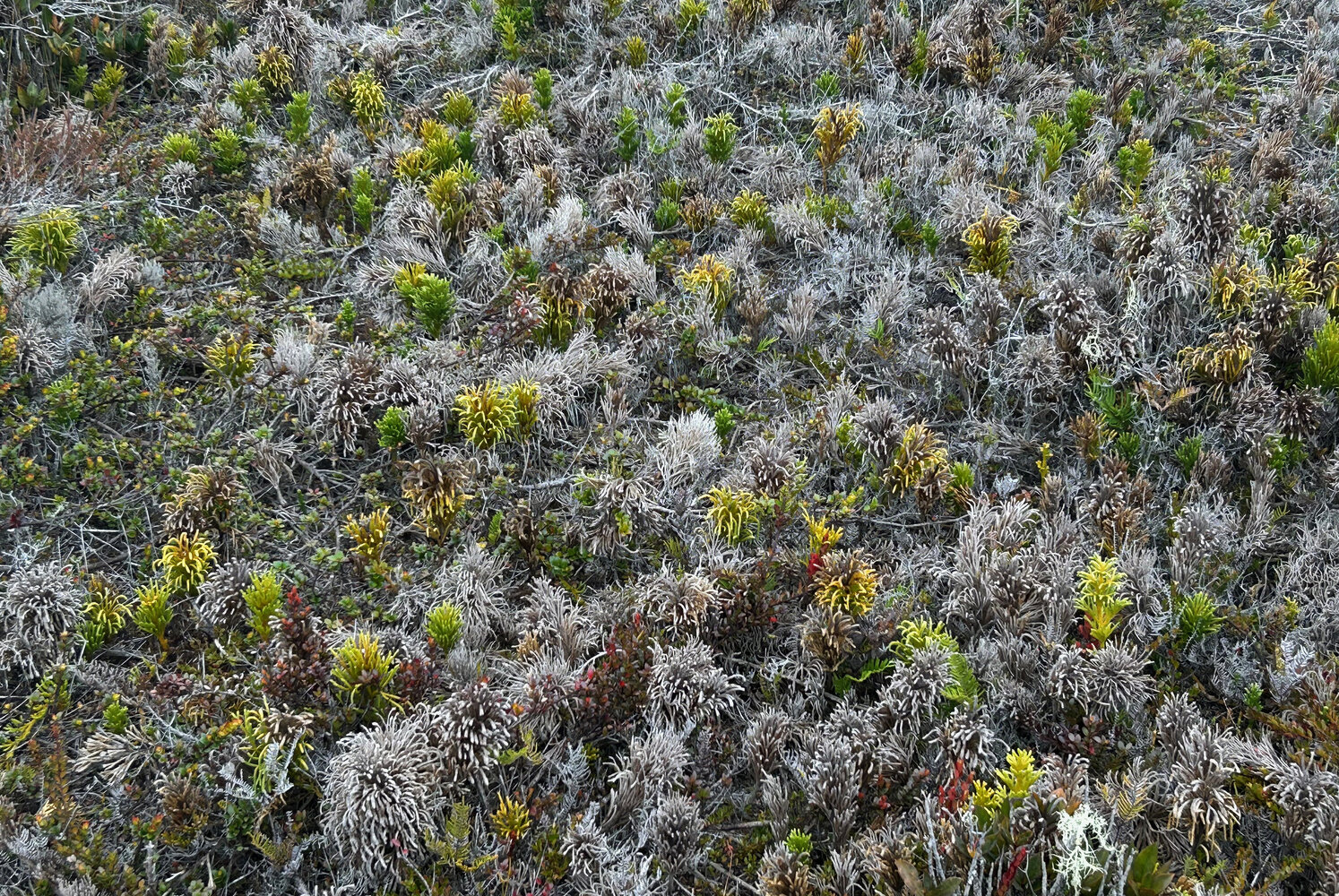Lycopodium (Palhinhaea) hydrophilum, erect branched stems covering the wet sandy savanna, the old ones, persistant ones dead, becoming grey and similar to Lichens, Anggi Lakes, 2300 m asl, Arfak Mts, West Papua