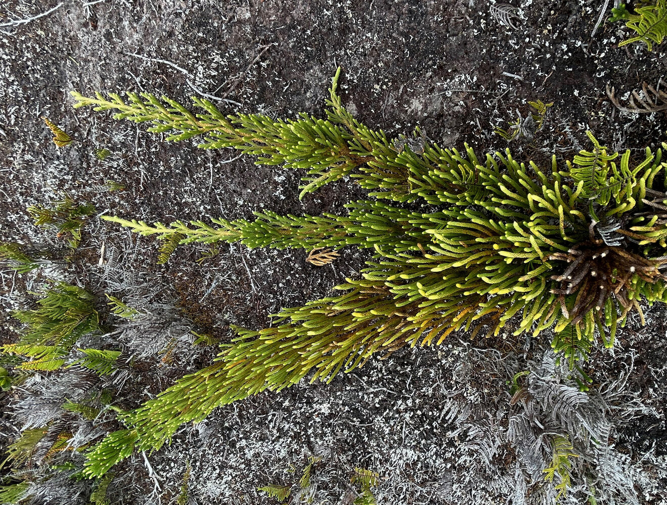 Lycopodium (Palhinhaea) hydrophilum, young erect coniferoid much branched entity keeping a main stem due to unequal dichotomy, Anggi Lakes, 2300 m asl, Arfak Mts, West Papua