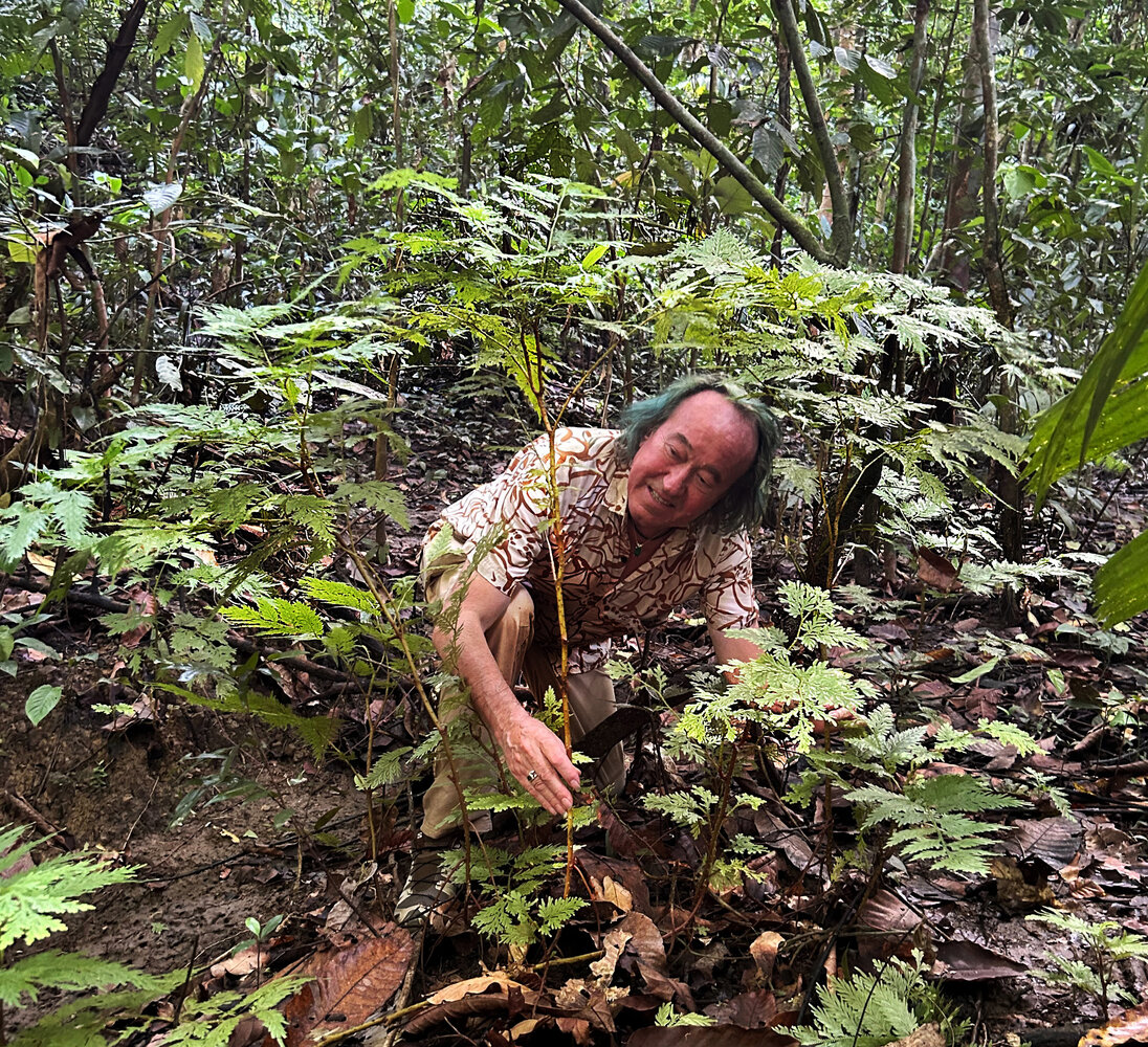 Patrick Blanc showing the thick free standing erect main stem of Selaginella bamleri, Manokwari, West Papua, May 2025
