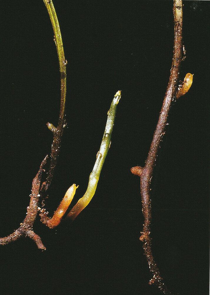 Psilotum nudum, basal offshoots issued from resting buds, most probably of adventitious origin