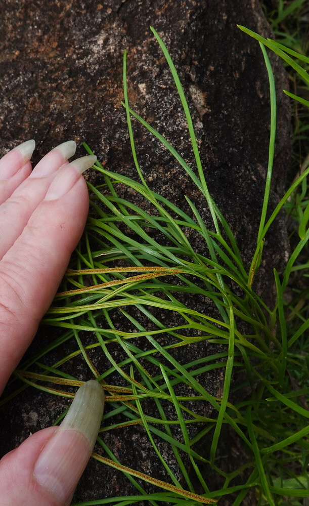Actinopteris pauciloba, sori along the lower surface of the frond pinnules, Sitalike, Katavi NP, Tanzania