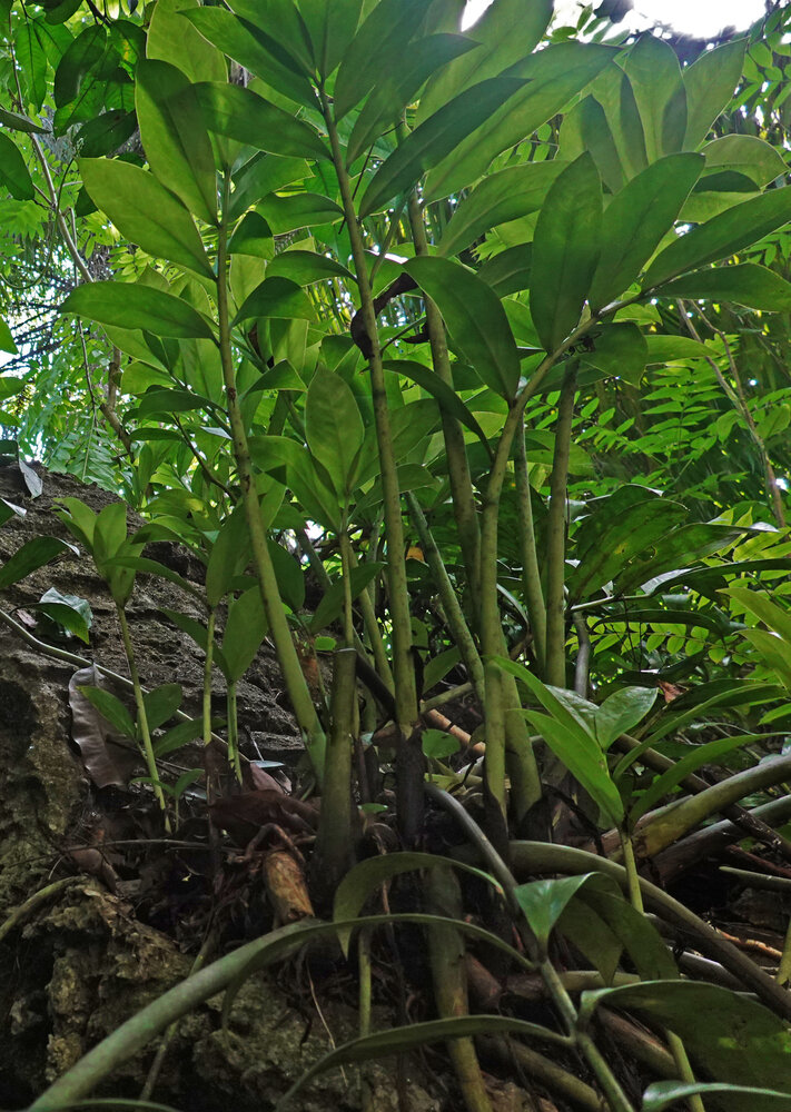 Zamioculcas zamiifolia on vertical forest understory cliff, Amani, 400 m asl, East Usambara, Tanzania