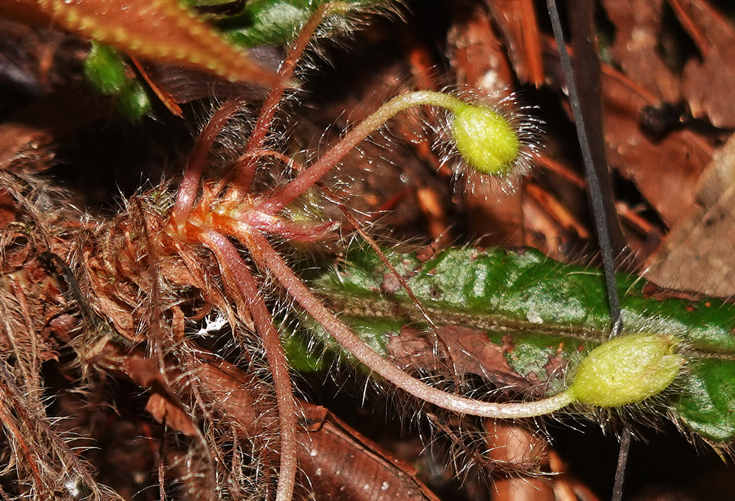 Acrotrema intermedium, flower at early anthesis, peduncle and narrow sepals densley covered with long transparent hairs, Kitulgala, Sri Lanka
