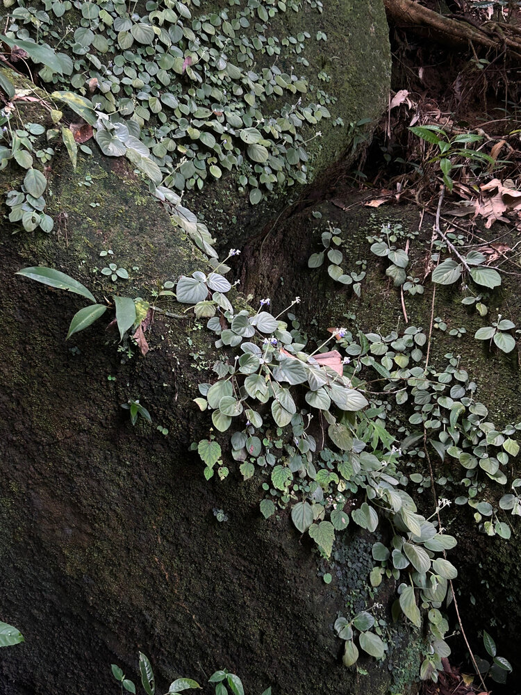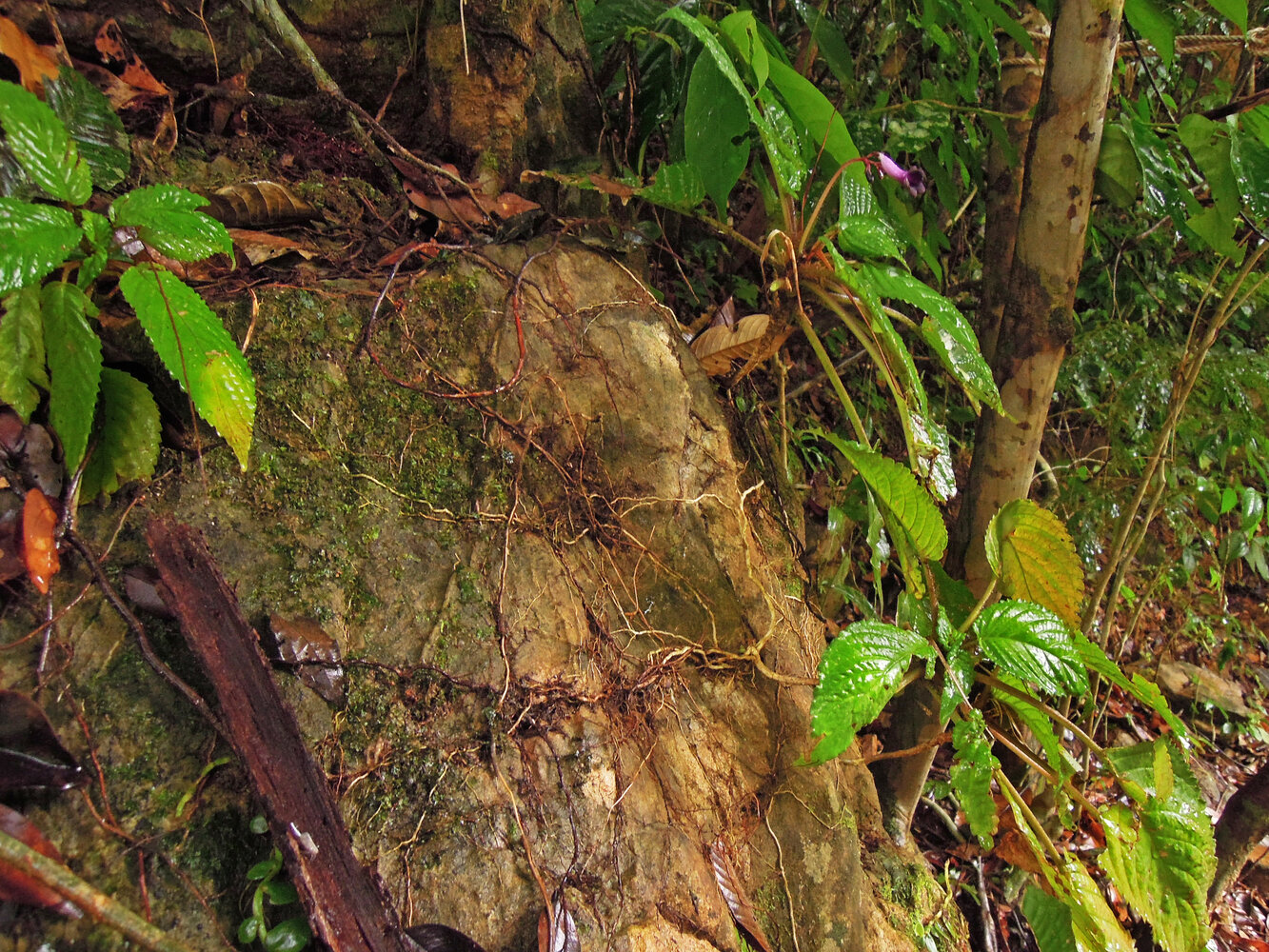 Ridleyandra cf. porphyrantha, roots covering the bare rock surface, Kenyir Lake, Malaysia