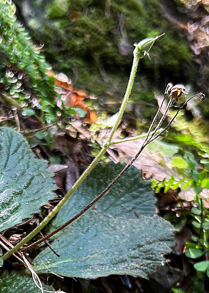 Loxocarpus incanus, after corolla withering, the flower peduncle turns upward and the fruit will become a horizontally circular dehiscent rain splash capsule, Penang Hill, Malaysia