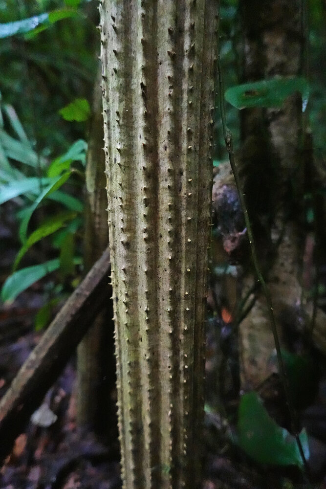 Pandanus krauelianus, longitudinally grooved stilt root, each crest being spiny due to aborted lateral roots, Manusela NP, 300 m asl, Seram, Moluccas