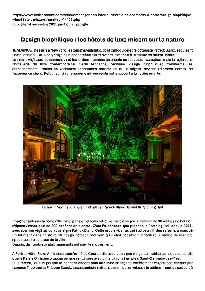 • www.maisonapart.com Patrick Blanc 14 Novembre 2025