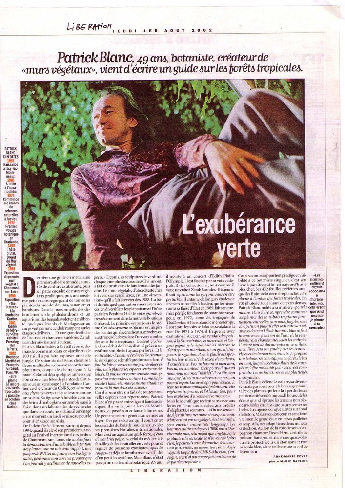Libération - Portrait - 1er Août 2002, Vertical Garden by Patrick Blanc