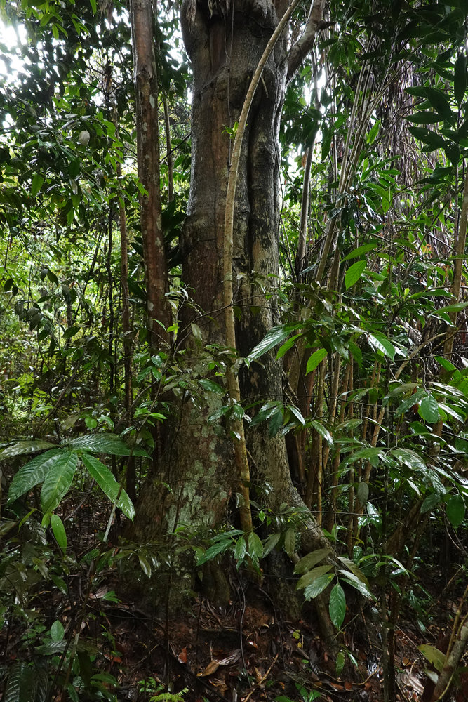 • Dracaena maingayi reaching the lower forest canopy, rainy day, Bukit Timah, Singapore