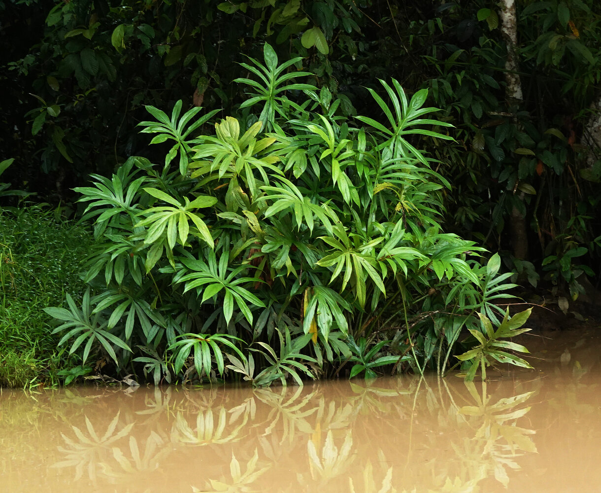 Lasia spinosa clump on the banks of the Kinabatangan river, Sukau, Sabah, Borneo