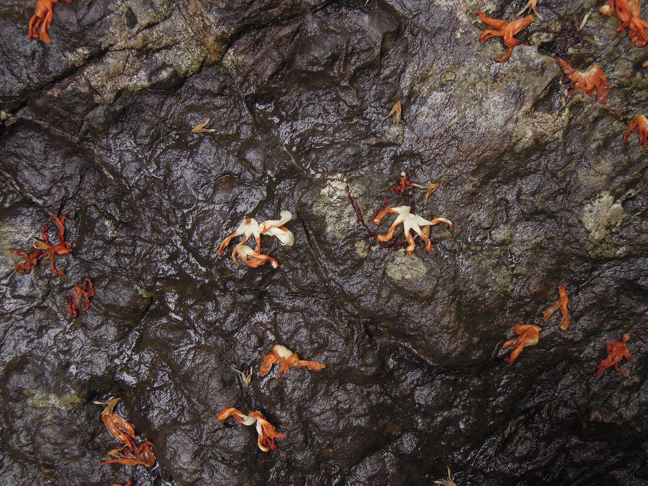 • Dipterocarpus oblongifolius, withered flowers fallen on the rocky banks of Kenyir lake, Malaysia