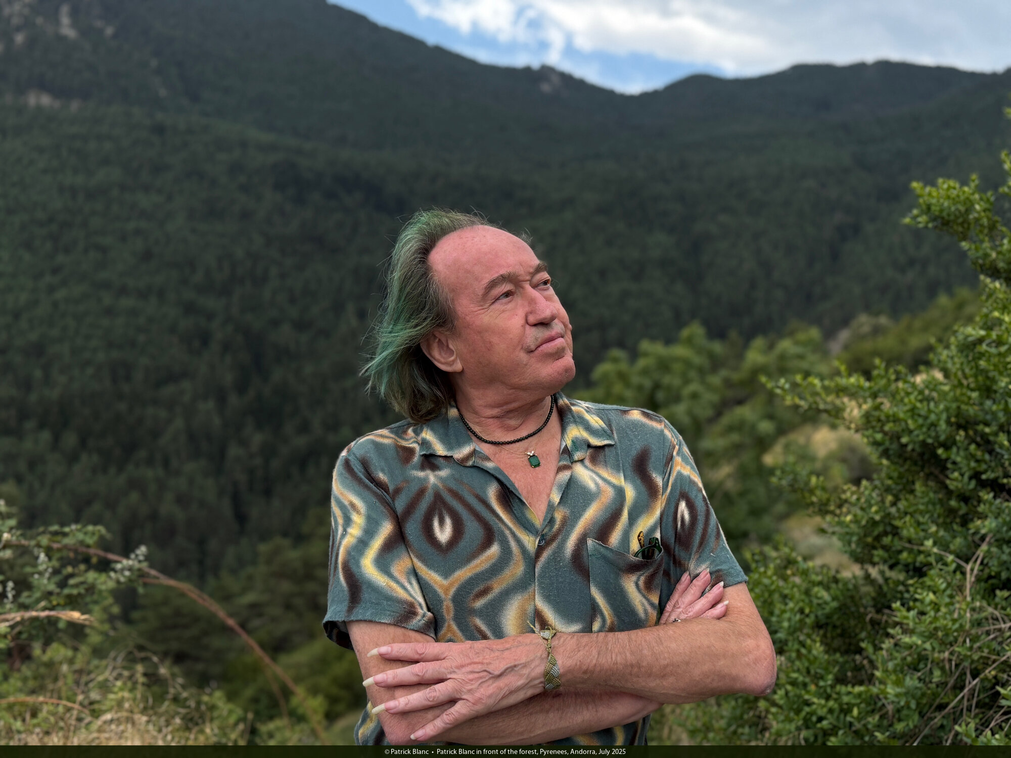 • Patrick Blanc in front of the forest, Pyrenees, Andorra, July 2025