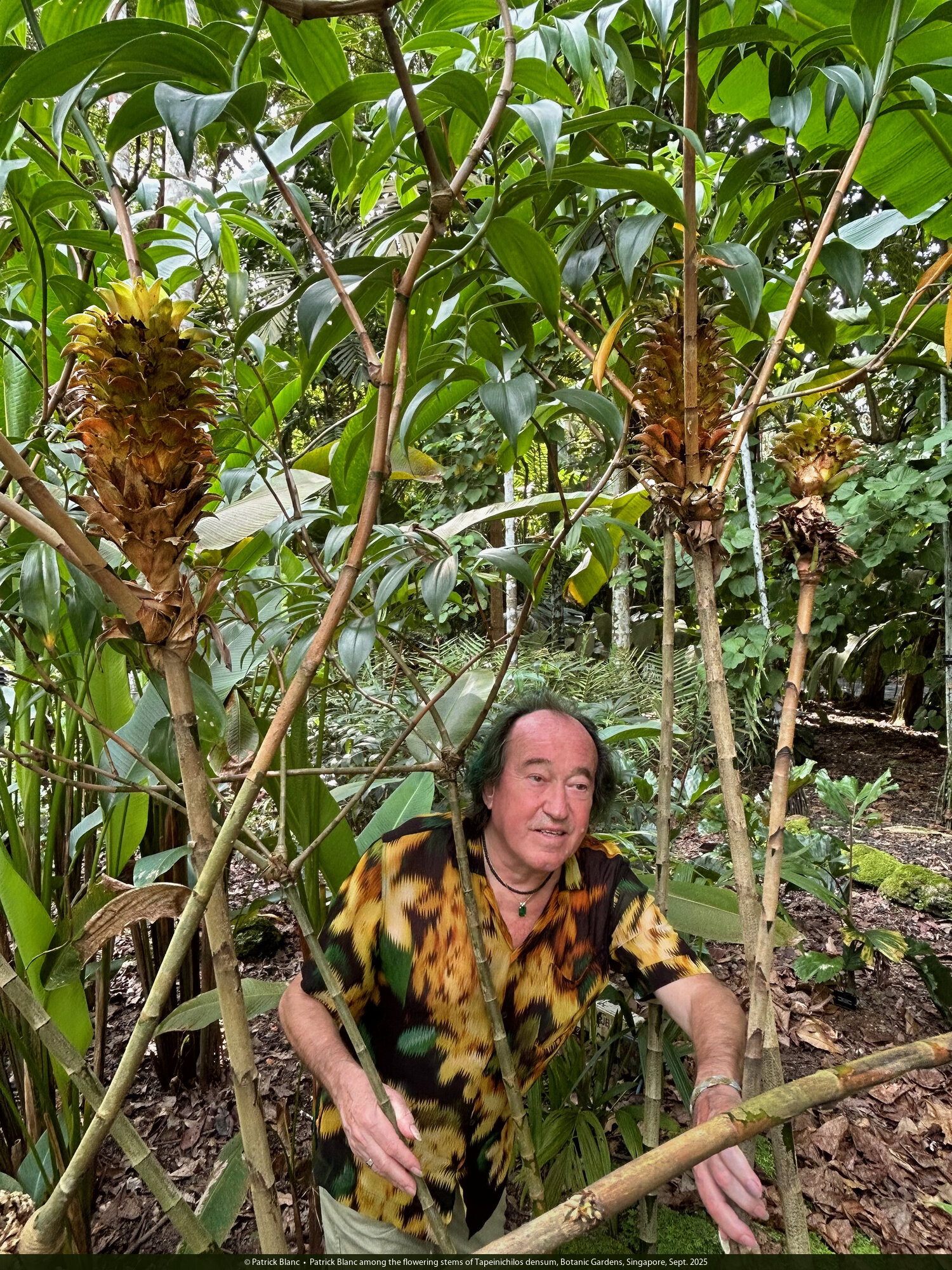 • Patrick Blanc among the flowering stems of Tapeinochilos densum, Botanic Gardens, Singapore, Sept. 2025