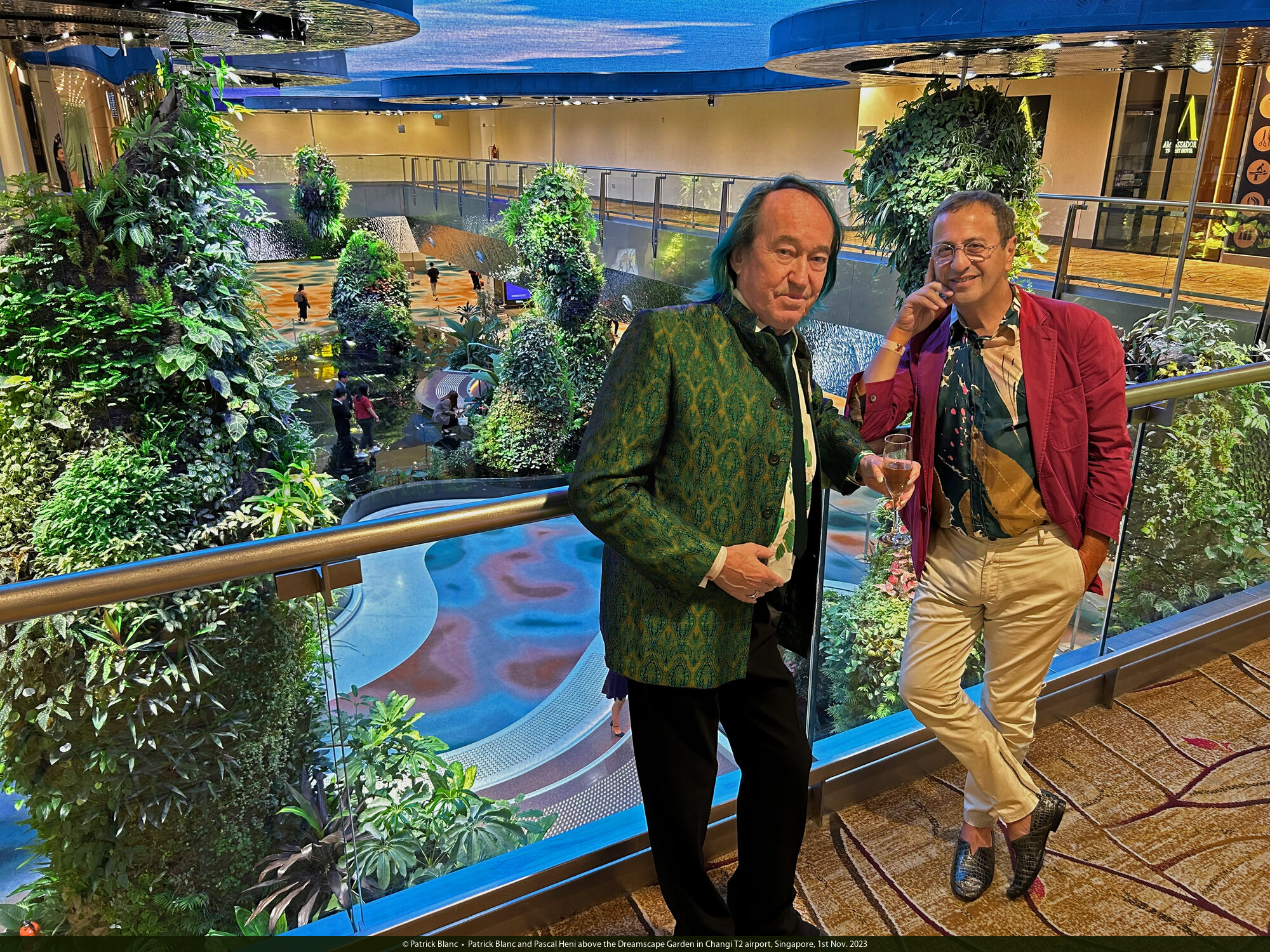 Patrick Blanc and Pascal Heni above the Dreamscape Garden in Changi T2 airport, Singapore, 1st Nov. 2023