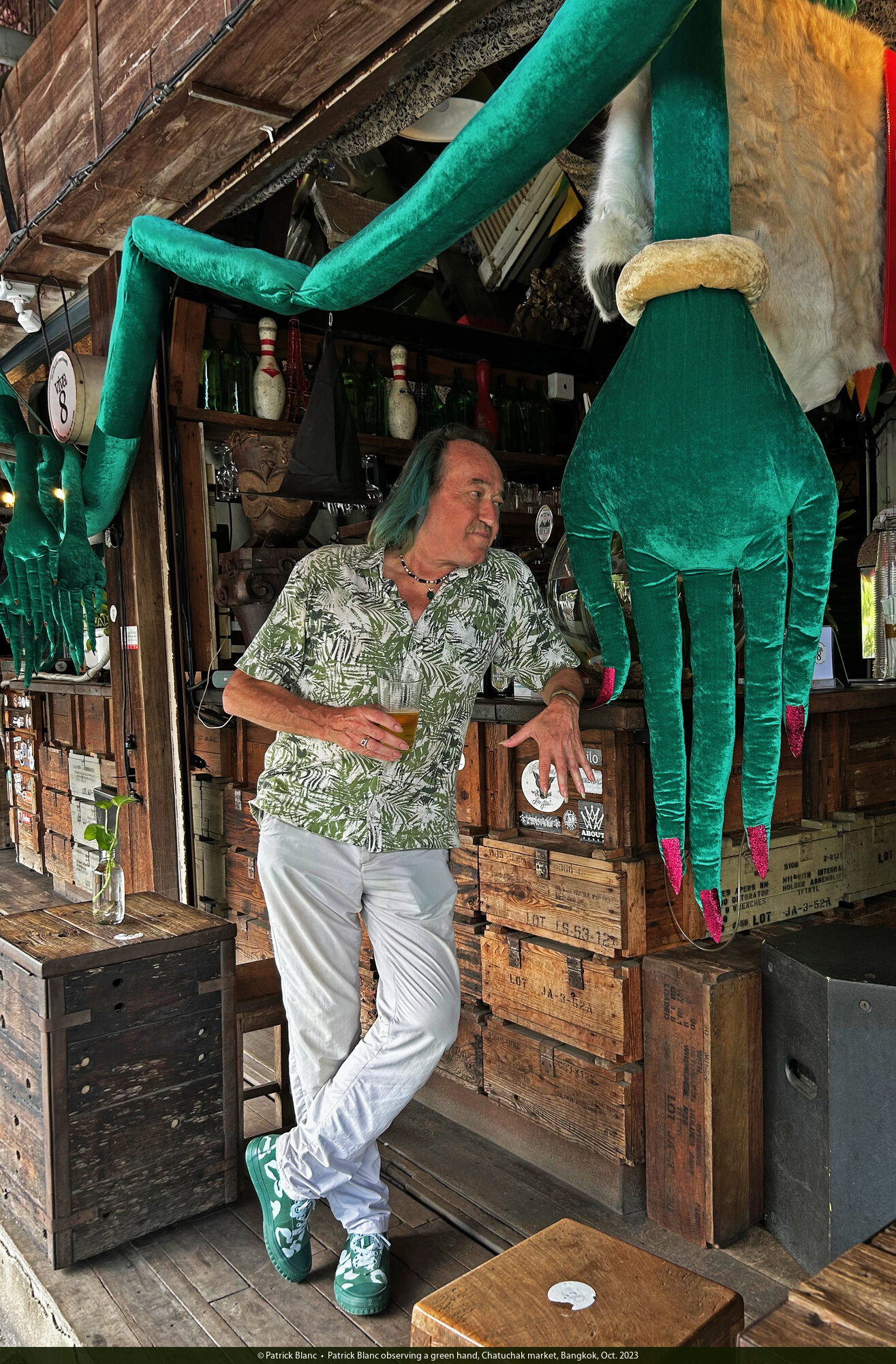 Patrick Blanc observing a green hand, Chatuchak market, Bangkok, Oct. 2023