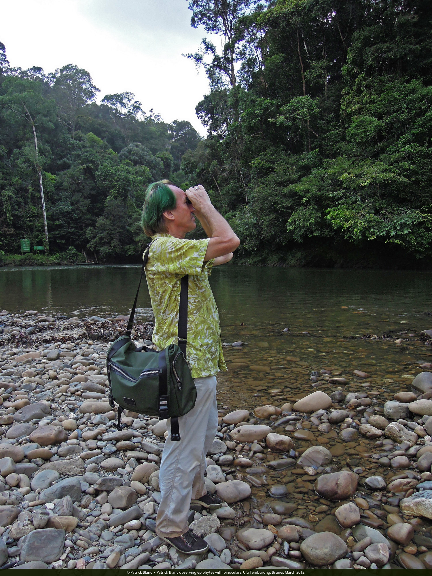 Patrick Blanc observing epiphytes with binoculars, Ulu Temburong, Brunei, March 2012