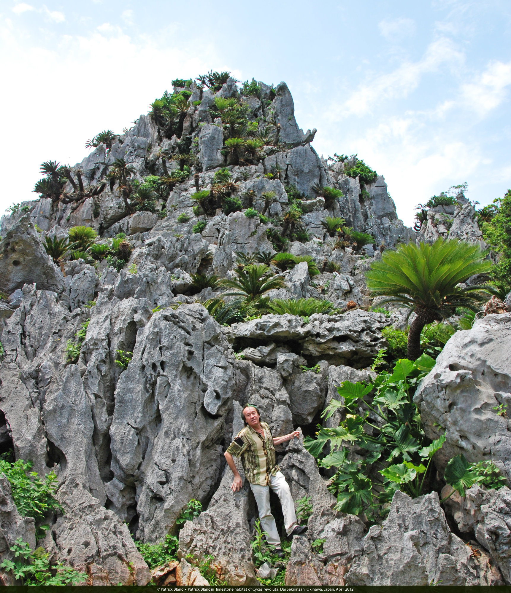 Patrick Blanc in front of Cycas revoluta population, Dai Sekirinzan, Okinawa, Japan, April 2012