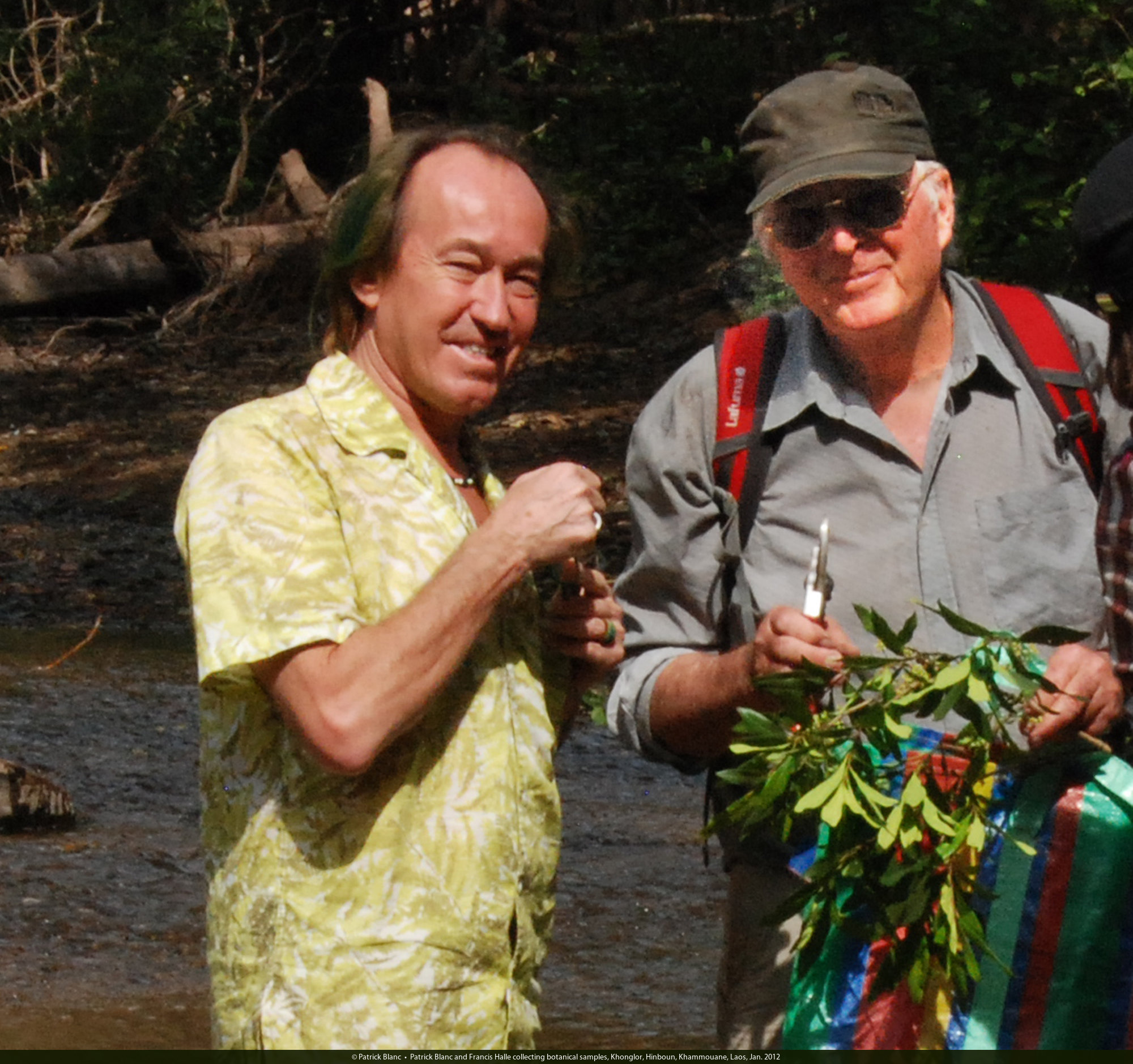 Patrick Blanc and Francis Hallé holding a Mussaenda sample, Hinboun, Laos, January 2012